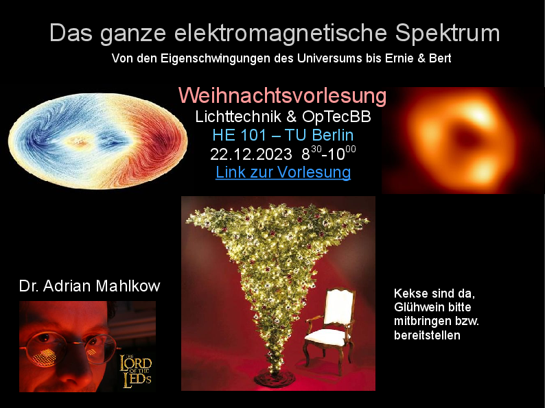 Das jährliche Highlight für alle Photonik- und Mikroelektronik-Begeisterte! Die Weihnachtsvorlesung des FB Lichttechnik der TU Berlin und des OpTecBB.